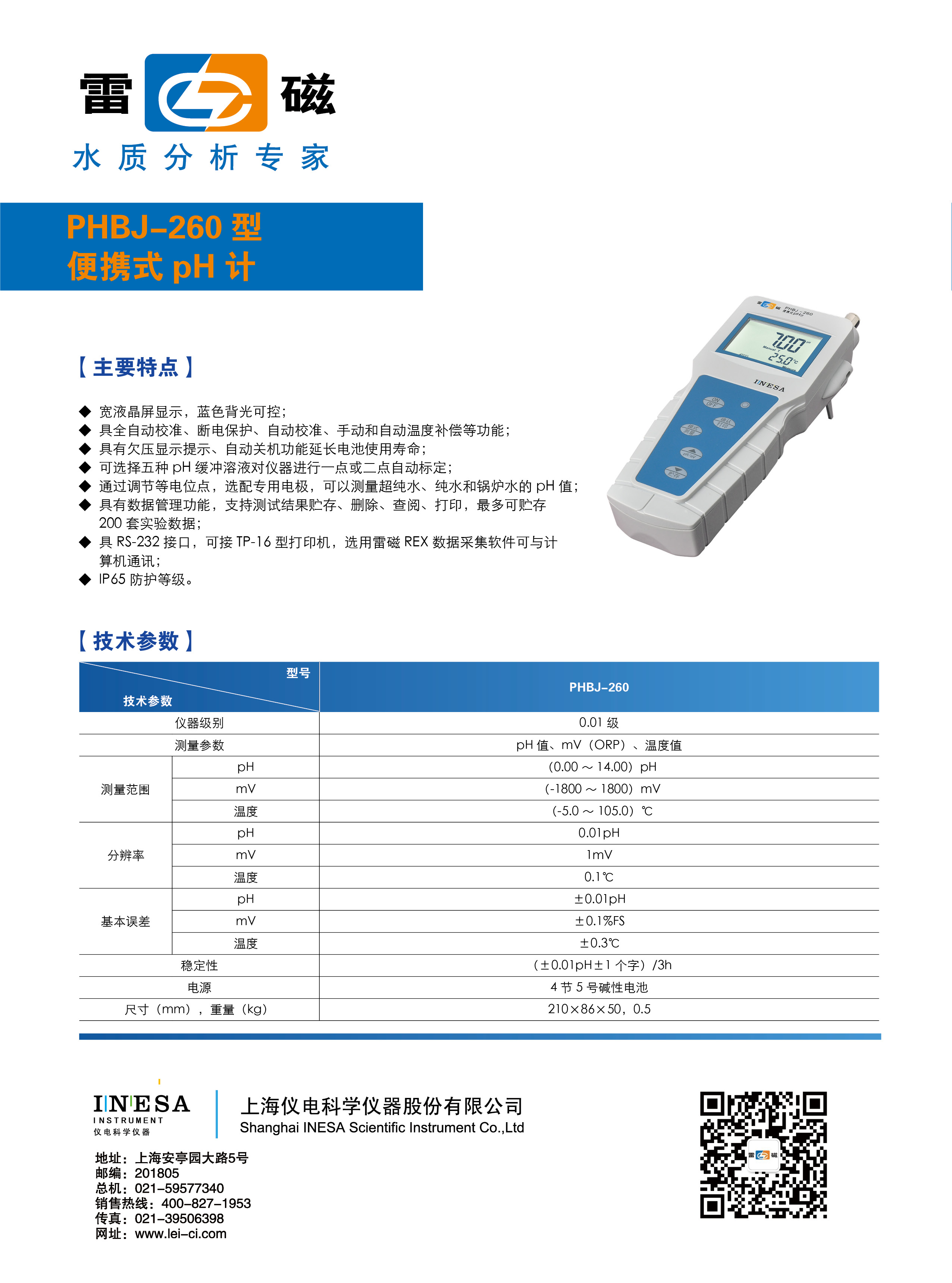 上海雷磁實(shí)驗(yàn)室便攜式酸度計(jì)(PH計(jì))PHBJ-260型