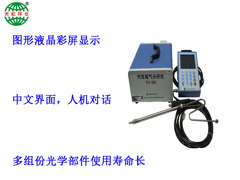 TH-500型汽車排氣分析儀是利用不分光紅外線和電化學傳感器對汽車排氣中主要組份CO、HC、CO2、NOX和O2的測量分析。該系列分析儀按照ISO9001質量保證體系及JJG688-90檢定規程的要求研制、生產和檢定。該系列儀器在研制過程中采納了許多環保界專家和汽車生產及維護廠家的建議,該系列儀器完全適用于環保部門和車輛維修、安檢、路檢等汽車尾氣排放檢測場合。