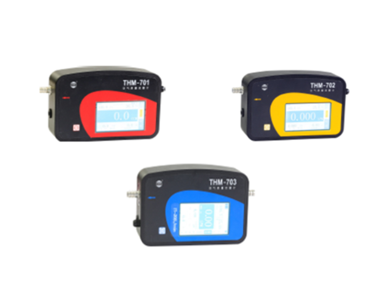 THM-700系列流量計專為空氣自動站儀器的流量檢測而設計,原理采用”精確分流技術+質量流量計(空氣)“的原理。THM-703流量測量范圍0-20L/m3,主要應用在采用16.7 L/m3采樣的PM10、PM2.5顆粒物濃度監測儀和采樣儀上,流量計接口按國際通行的Φ32.7mm(1.25英寸)制作,測量時只需將使用16.7 L/m3流量的PM10或PM2.5的切割器拔下,插上流量計即可,快捷方便。該儀器具有流量測試數據遠程傳輸到PC機上,實現連續測量,五分鐘記錄4項數據的功能。THM-702流量測量范圍0-3L/m3,主要應用在SO2、NO2、CO、O3等監測儀器的流量測試。THM-701流量測量范圍0-200mL/m3,與THM-703配合使用,主要應用在動態校準儀的兩個質量流量計的測試。