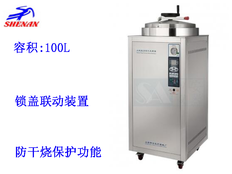 容積:100L; 斷水保護功能 ; 手輪式開蓋結構 ; 額定工作壓力:0.165Mpa; 自脹式密封 ; 滅菌結束自動報警