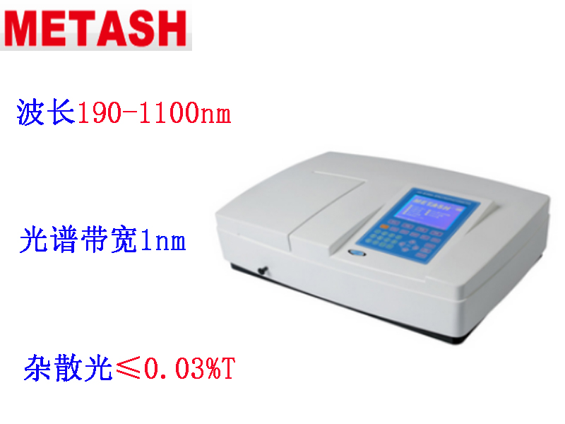 上海元析V-5800(PC)型可見分光光度計波長范圍320-1100nm,光譜帶寬2nm,雜散光≤0.05%T;V-5800(PC)型可見分光光度計雙光束比例監測光學系統,波長自動校準、自動設定、偏差自我修復,能直接建立標準曲線,V-5800PC型標配元析公司的掃描軟件可直接完成光度測量、定量測試、定性測試、動力學測試、多波長測試、DNA/蛋白質測試及數據圖譜的處理。