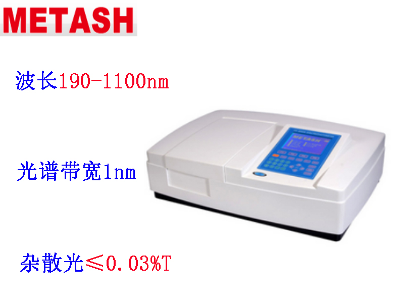 上海元析V-5800(PC)型可見分光光度計波長范圍320-1100nm,光譜帶寬2nm,雜散光≤0.05%T;V-5800(PC)型可見分光光度計雙光束比例監(jiān)測光學(xué)系統(tǒng),波長自動校準(zhǔn)、自動設(shè)定、偏差自我修復(fù),能直接建立標(biāo)準(zhǔn)曲線,V-5800PC型標(biāo)配元析公司的掃描軟件可直接完成光度測量、定量測試、定性測試、動力學(xué)測試、多波長測試、DNA/蛋白質(zhì)測試及數(shù)據(jù)圖譜的處理。
